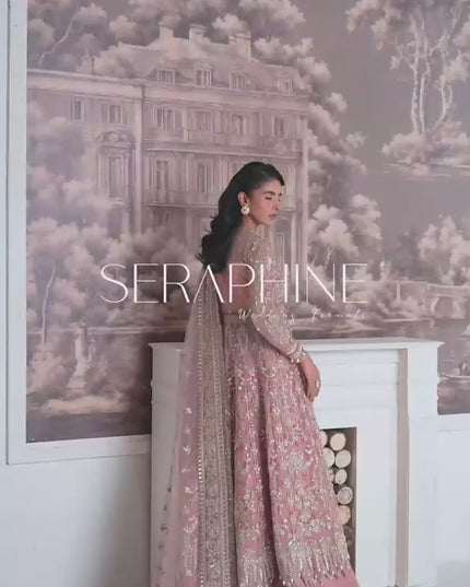 Blume's Tea Pink Net Hand Embellished Frock features intricately embroidered panels on both the front and back, along with beautifully hand embellished sleeves for a touch of elegance. The raw silk skirt perfectly complements the delicate look, while the embroidered net dupatta adds a stunning finishing touch. Passionately crafted for those who appreciate artistic beauty in every detail.