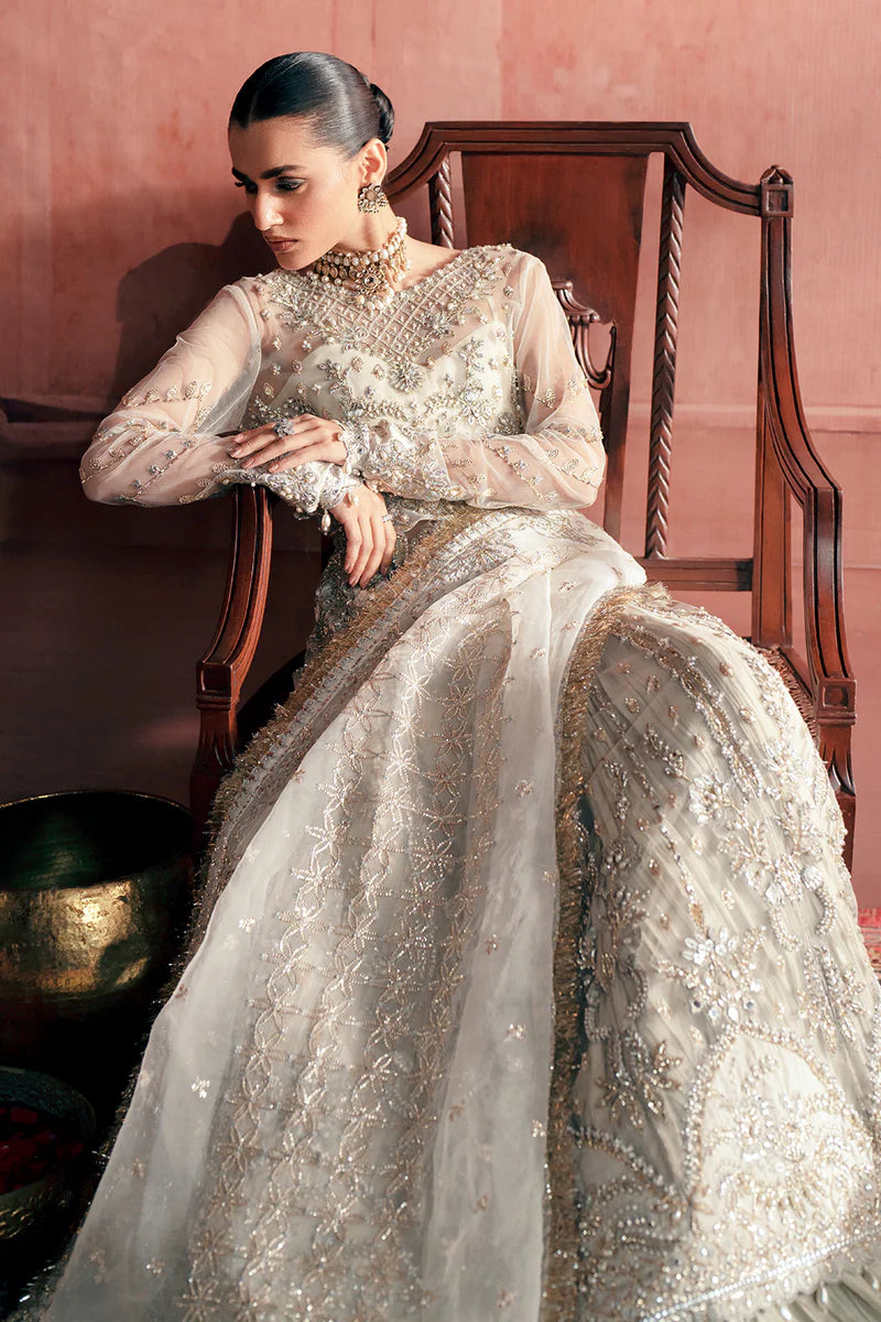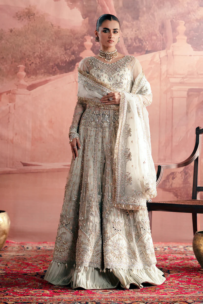 Chandni | Off White Net Hand Embellished Embroidered Frock