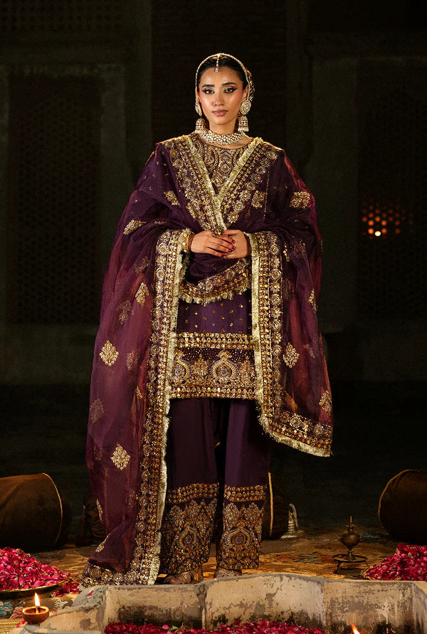 Zareen Gul | Dark Purple Embroidered Raw Silk Suit