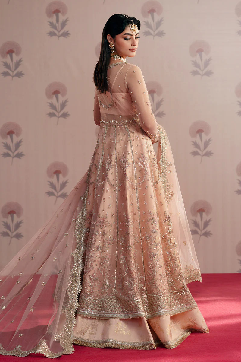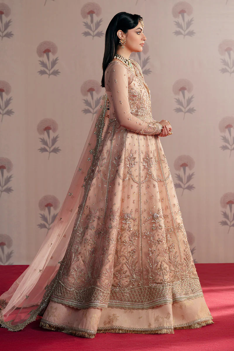 Dilara | Peach Net Hand Embellished Embroidered Peshwas