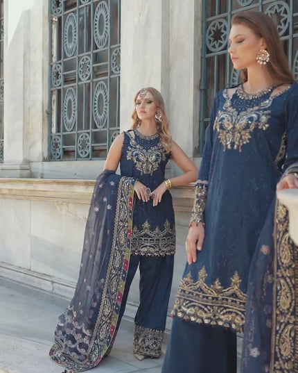 Maria B | Cobalt Blue Embroidered Hand Embellished Suit